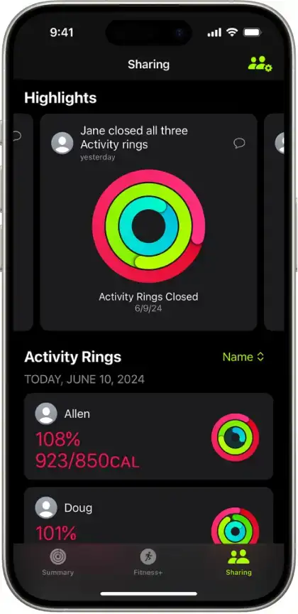 Your daily workout statistics are displayed in this section. You see the same day's data every day. Your highest record in each indicator is also recorded and maintained in Fitness. You can also customize the indicators in this section. To do this, simply go to the bottom of the Summary page and touch the Edit button.