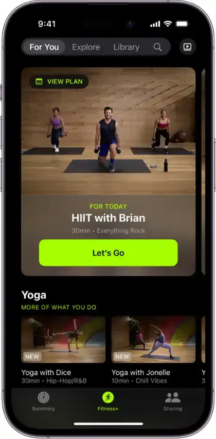 To start any of the workouts available in Fitness+, you can tap on the workout and after viewing its information and details, tap the Let's Go or Let's Begin button.