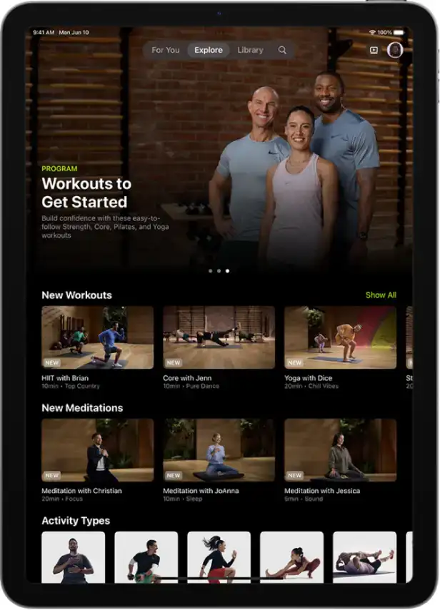 This section works like Instagram's Explore. Explore in Fitness+ provides you with new sports, trainers, and workouts available on the service, so you always have something to do.