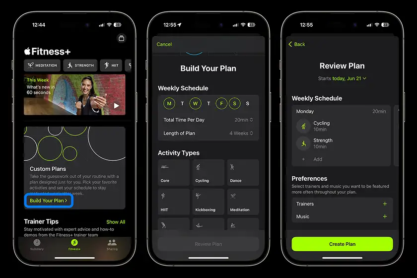 اگر آیفون خود را آپدیت کنید اپلیکیشن Fitness قابلیت ساخت برنامه تمرینی سفارشی (Custom Plan) را در اختیارتان می گذارد. برای ساخت تمرین شخصی وارد اپلیکیشن Fitness شوید. سربرگ Fitness+ را باز کنید. در بخش Custom Plans روی دکمه ی Build Your Plan بزنید. هدف (مثلاً Core یا HIIT)، مدت زمان، تعداد روزها در هفته و سطح تمرین را مشخص کنید. اپل سپس تمرین هایی پیشنهاد می دهد که دقیقاً با هدف شما یعنی لاغری شکم هماهنگ هستند. این امکان همچنین به شما اجازه می دهد جلسات تمرینی را با برنامه زندگی روزمره خود تطبیق دهید و تعهد بیشتری نسبت به مسیر تناسب اندام داشته باشید. با ساخت تمرینات اختصاصی در اپل واچ می توانید آن طور که خودتان می خواهید ورزش کنید.