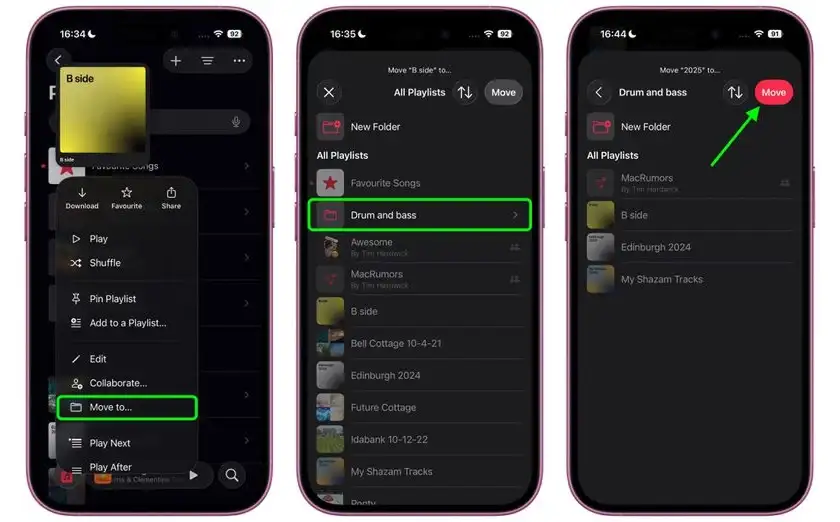 انتقال پلی لیست ها به پوشه در اپل موزیک