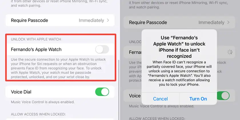 از آنجا که باز کردن قفل آیفون روی خود آیفون آسان تر انجام می شود استفاده از اپل واچ برای باز کردن قفل آیفون به عنوان روش دوم و جایگزین فیس آیدی محسوب می شود. در واقع آیفون شما تلاش می کند با فیس آیدی لاک اسکرین را باز کند اما اگر به هر دلیلی فیس آیدی نتوانست قفل آیفون را باز کند آن زمان اپل واچ وارد کار شده و این فرآیند را برایتان انجام می دهد.